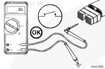 測量電阻。萬(wàn)用表必須顯示為閉路(10 歐姆或更?。?。