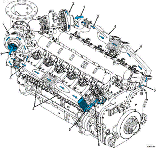 所有的工業(yè)用 QSK50 渦輪增壓器(除低壓渦輪增壓器外)與水冷式渦輪增壓器軸承殼體一起運轉,以延長(cháng)渦輪增壓器軸承和密封件的壽命。軸承殼體的管道包含在發(fā)動(dòng)機封套中,無(wú)需客戶(hù)安裝或調整。但渦輪增壓器冷卻液的管道需要在初次加注時(shí)排氣。