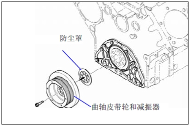 � 與安裝順序相反,卸去曲軸滑輪的固定螺栓,然后卸去曲軸輪和減振器。
