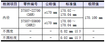 (3) 測量值不在基準值范圍內,或凸緣部分有斷缺時(shí),更換新的缸套。