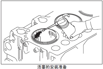(c) 小心地將活塞放入缸套內,注意不要使潤滑油環(huán)受沖擊損壞。