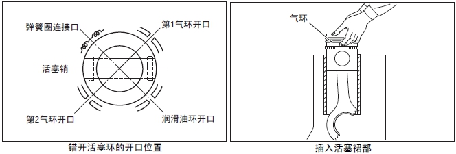 注: 參照上記(2) 項,錯開(kāi)活塞環(huán)的位置。