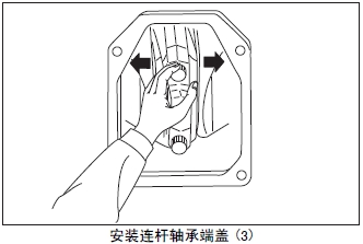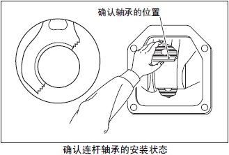 (6) 從曲軸箱體的側面檢測口檢查連桿的上軸瓦是否脫落。上軸瓦錯位時(shí),用手推壓上軸瓦進(jìn)行調整。