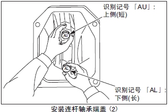 (3) 確認三菱發(fā)動(dòng)機連桿軸承端蓋和連桿的裝配編號位于同一側,并且裝配編號一致后,將連桿軸承端蓋安裝在連桿上。