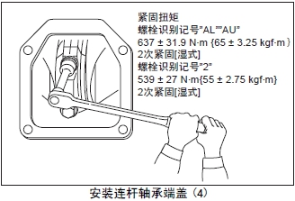 (7) 按照規定的扭矩緊固連桿螺栓。旋緊連桿螺栓時(shí),在按照規定扭矩緊固后,將螺栓完全旋松,再次按照規定的扭矩緊固。再次測量軸向間隙。