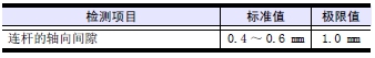 (6) 檢測三菱發(fā)動(dòng)機連桿的軸向間隙,調整至標準值范圍內。