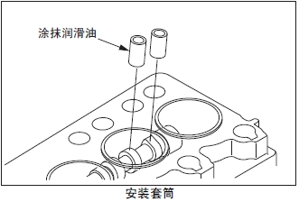 套筒的外表面涂抹潤滑油后放入套筒孔內,緩慢座落在凸輪軸上。