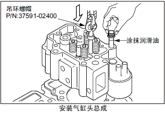 (3) 緩慢降落氣缸頭,在確認定位銷(xiāo)進(jìn)入銷(xiāo)孔內后,臨時(shí)固定氣缸頭螺栓。