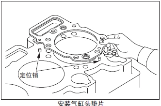 (2) 將涂抹液狀墊料后的氣缸頭墊片,對準定位銷(xiāo)后安裝。