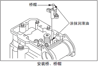 (3) 橋帽涂抹潤滑油,安裝在橋上。注意橋帽不要從頂桿孔落入曲軸箱內。