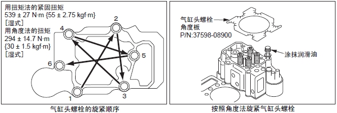 旋緊氣缸頭螺栓的方法,有扭矩法和角度法。