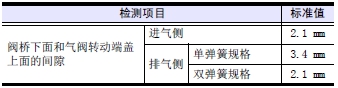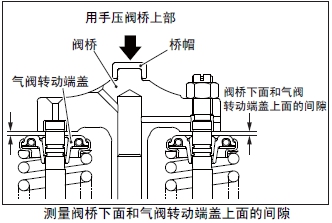 用手按壓閥橋,使和閥桿上端面接觸,檢測閥橋下面和氣閥轉動(dòng)端蓋上面的間隙。間隙超過(guò)標準值范圍時(shí),確認故障的部件后更換新品。