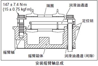 (2) 搖臂軸的銷(xiāo)孔和定位銷(xiāo)對準后,將搖臂總成安裝在搖臂箱體上。