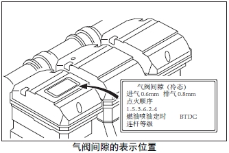 (b) 氣閥間隙的標準值指示在No.1 氣缸的搖臂罩的銘牌上。