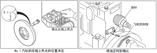 燃油噴油正時(shí)根據發(fā)動(dòng)機的輸出功率、轉速和規格等不同而異,必須在No.1 搖臂罩的銘牌上予以確認。