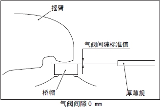 (2) 在搖臂和橋帽之間插入和氣閥間隙標準值相同厚度的厚薄規。( 氣閥間隙0 mm)