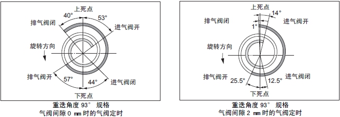 注:(a) 從凸輪軸側面向氣缸頭,左側是進(jìn)氣閥,右側是排氣閥。