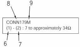 故障診斷與排除程序的術(shù)語(yǔ)圖 (6) 接頭內的端子編號 (7) 短路位置 (8) 接頭編號 (9) "M" 陽(yáng) "F" 陰 |