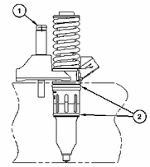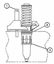 松開(kāi)鎖緊螺母(1)。 順時(shí)針旋轉調節螺釘。單體噴油器接合后停止旋轉調整螺釘。 順時(shí)針旋轉調節螺釘。