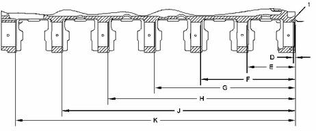 215.9mm(8.5in)長(cháng):螺栓11至螺栓14、16、18、20、22、24和26