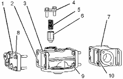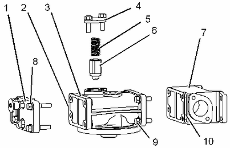 拆卸螺栓 (9) 。從發(fā)動(dòng)機機油濾清器底座 (3) 上卸下接頭 (7) 和密封墊 (10) 。