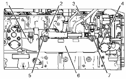 卸下發(fā)動(dòng)機機油冷卻器芯 (6) 。從冷卻器進(jìn)口彎頭 (2) 和歧管 (3) 上卸下 O 形密封圈。