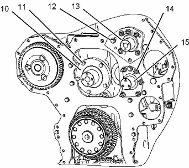 注: 如果卸下軸組件,跳過(guò)步驟 12。 需要重新調整凸輪軸齒輪和可調惰輪的齒隙。 請參閱測試與調整, "齒輪總成(前)- 正時(shí)"。