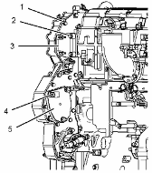 將適當的起吊設備連接在前殼體 (10) 上。 前殼體 (10) 的重量約為 57 kg (125 lb)。 將前殼體 (10) 安裝在缸體的定位銷(xiāo)上。