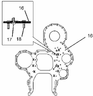 將板 (16) 安裝在缸體的定位銷(xiāo)上。安裝新鎖緊螺栓 (17) (標有 "X")以將前板固定在缸體上。擰緊鎖緊螺栓至扭矩為 55 N·m (41 lb ft)。