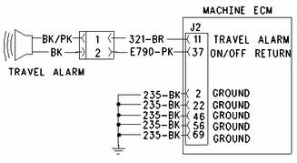 該診斷代碼與行駛警報器有關(guān)。 FMI 05 意味著(zhù) ECM 已確定警報器的電流低于正常值。