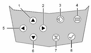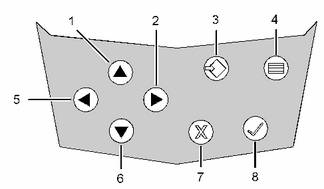 在維修模式下,使用適當的向上鍵(1)或向下鍵(6)滾讀所列的菜單選項。高亮顯示"STATUS(狀態(tài))"設置。按下確定鍵(8)。
