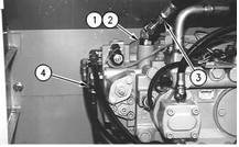 將6V-4143接頭和177-7860軟管組件連接到測壓口(5),直到油開(kāi)始從軟管的開(kāi)口端流出。 從測壓口(5)拆下快速接頭。