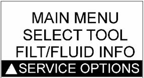 使用適當的向上鍵(1)或向下鍵(6)滾讀所列的菜單選項。高亮顯示"SERVICEOPTIONS(維修選項)"設置。按下確定鍵(8)。