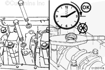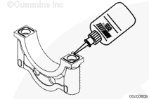 主軸承蓋的連接配合面只能使用 Loctite™ 518 螺紋密封膠。其它密封膠可能變硬、變脆,從而使機和碎屑進(jìn)入到主軸承/缸體接合處,從而造成發(fā)動(dòng)機損壞。 |