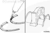 每道密封膠寬度必須在 3 至 5 mm [0.12 至 0.20 in] 之間,并且不得進(jìn)入到主軸瓦內徑中。主軸承中的密封膠可能損壞發(fā)動(dòng)機。 |