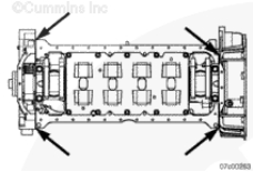 將油底殼安裝到氣缸體上。在油底殼每一側與前后部距離相等的位置,分別擰緊 1 條 13 mm 的油底殼安裝螺釘。