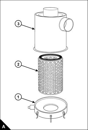 The air filter is fitted with a restriction indicator (A) which gives a visual warning when the filter needs a service.