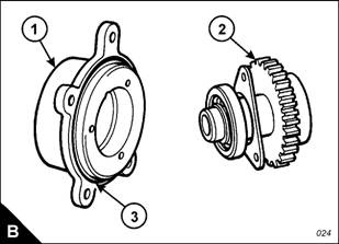 Fit the assembly of the bearings and gear (B2) into the pump drive housing (B).