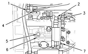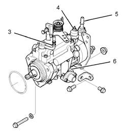 注:必須擰緊螺釘(5),以防噴油泵的軸發(fā)生轉動(dòng)。從發(fā)動(dòng)機上卸下噴油泵后不能使噴油泵的軸轉動(dòng)。