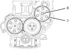 7.使用適當的拉拔器拆卸燃油噴油泵齒輪(7)。