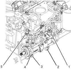 注:必須擰緊螺釘(3),以防噴油泵的軸發(fā)生轉動(dòng)。從Perkins發(fā)動(dòng)機上卸下噴油泵后不能使噴油泵的軸轉動(dòng)。