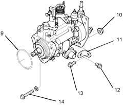 9.從殼體(前)上卸下噴油泵。從燃油噴油泵上拆卸O形圈(9)并棄置O形圈。
