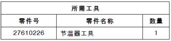 4.將水溫調節器(3)放置到水溫調節器殼體(1)中。安裝27610226節溫器工具(5)以擠壓擋圈(4)。旋轉工具(5)以將水溫調節器(3)固定到水溫調節器殼體(1)中。面,以在發(fā)動(dòng)機運轉期間將水溫調節器(3)固定。