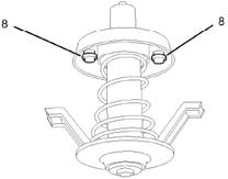 2.水溫調節器(3)有兩個(gè)通過(guò)閥銷(xiāo)打開(kāi)和關(guān)閉的排放口(8)。當水溫調節器處在關(guān)閉位置時(shí),排放口(8)排放熱水和/或空氣,使之流過(guò)水溫調節器(3)。確保閥銷(xiāo)(8)可以在排放口內自由移動(dòng)。