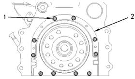 注:曲軸后油封組件(2)不可維護。如果拆下了曲軸后油封組件(2),必須更換該組件。