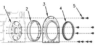 注:曲軸后部密封件和曲軸后部密封件的殼體是作為一個(gè)整體組件制造的。使用十個(gè)調整螺釘,以便將曲軸后部密封件組件固定到缸體上。