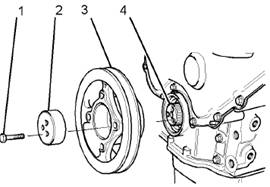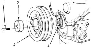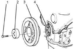 2.將Perkins1103/1104柴油發(fā)動(dòng)機標準皮帶輪(3)放置到曲軸(4)上。