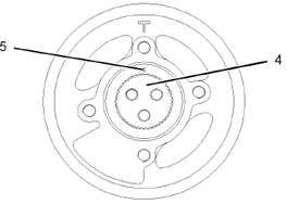 注:皮帶輪最多可以順時(shí)針?lè )较蚧蛘吣鏁r(shí)針?lè )较蛐D4度,以便用曲軸上的花鍵對準皮帶輪中的花鍵。這在可接受的限值范圍之內。