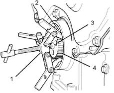 2.將適當的適配器(3)安裝在曲軸(4)與拉拔器(1)之間。