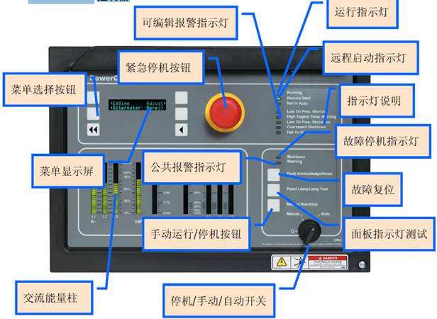 緊急停機按鈕:機組發(fā)生緊急情況時(shí)按下此按鈕,機組立即停機,在此情況下,機組不能啟動(dòng)。